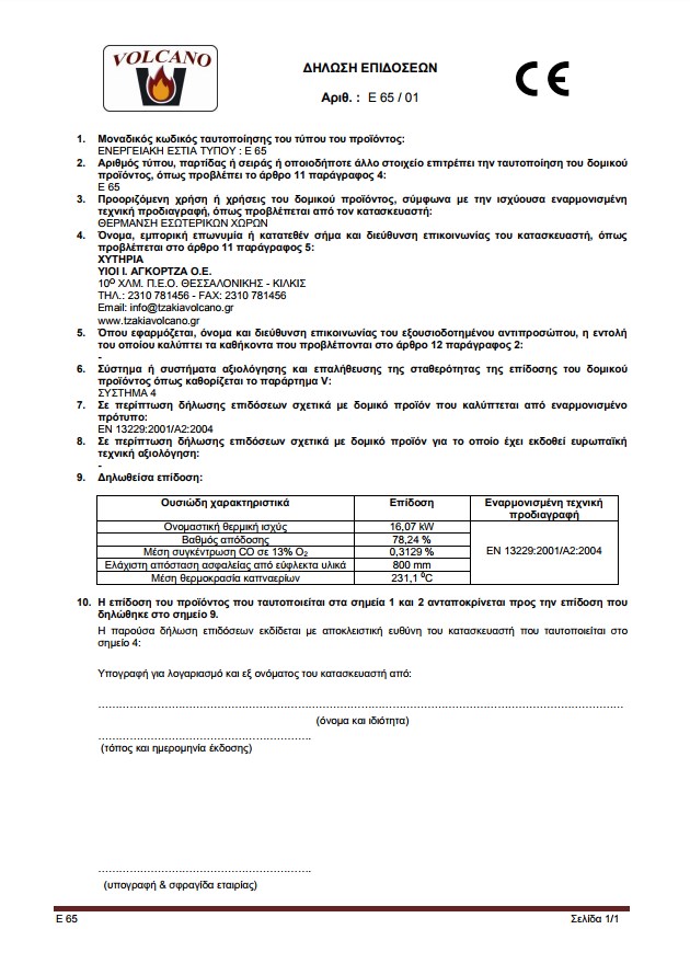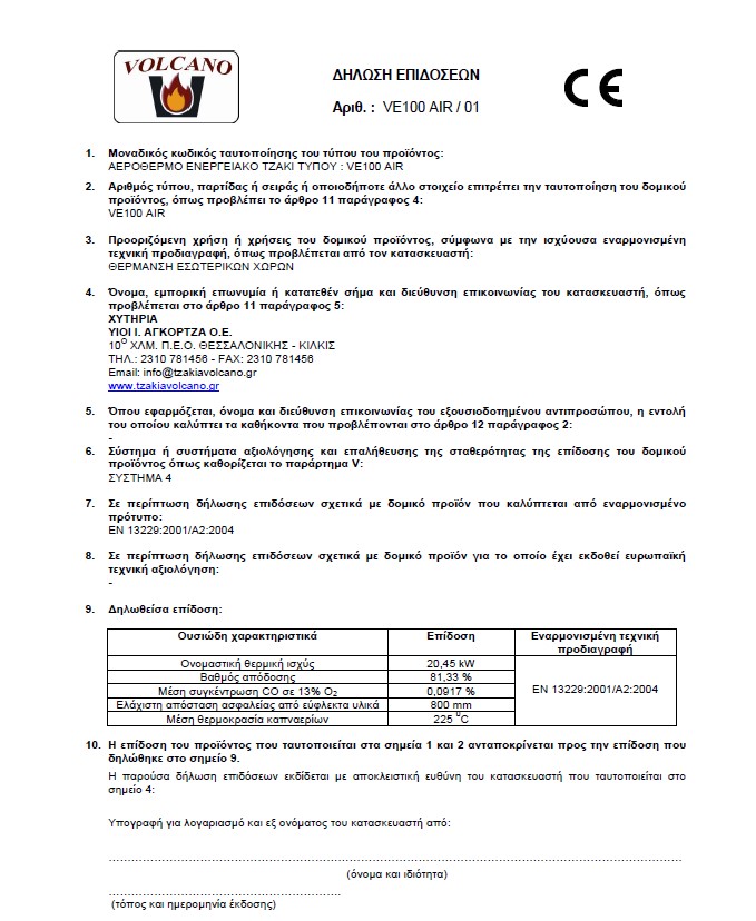 CE Θερμάστρα VOLCANO