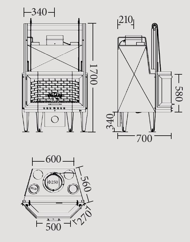 | Εξαγωγή καπνοδόχου: | Φ250 |
