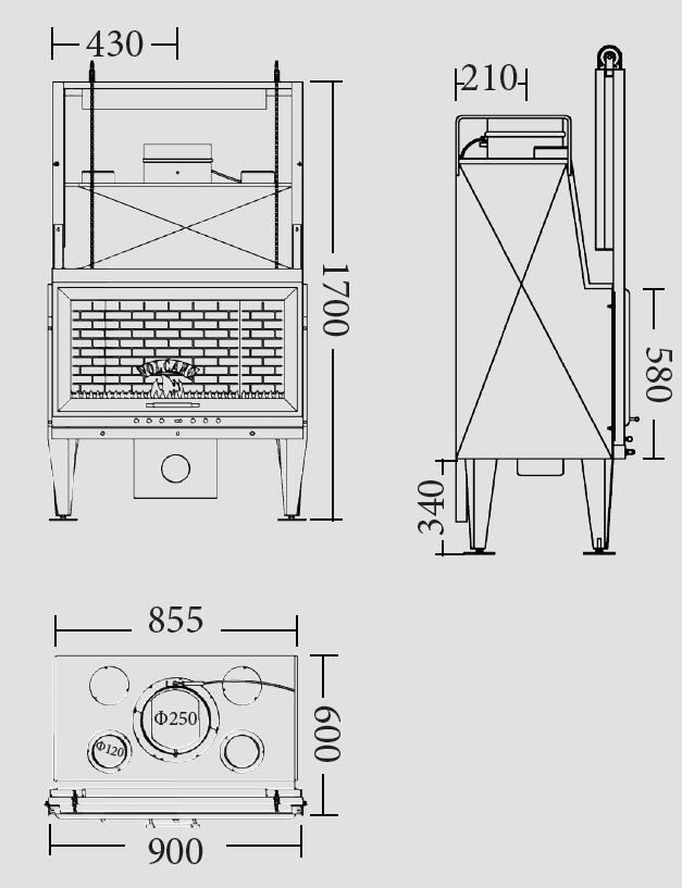 | Εξαγωγή καπνοδόχου: | Φ250 |